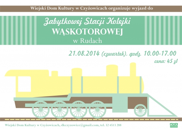 Wiejski Dom Kultury w Czyżowicach organizuje wyjazd do Zabytkowej Stacji Kolejki Wąskotorowej w Rudach. Wycieczka odbędzie się 21 sierpnia w godzinach od 10.00 do 17.00. Cena wyjazdu wynosi 45 złotych.